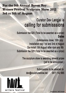 Yes – Its on again The Sculpture Show at Byron Writers Festival August 3-5. So while some 50 000 visitors are being tantalised with words of wisdom from some of the greatest writers in Australia and overseas – they can also be inspired with a visual array of amazing sculptures at the Sculpture Show.