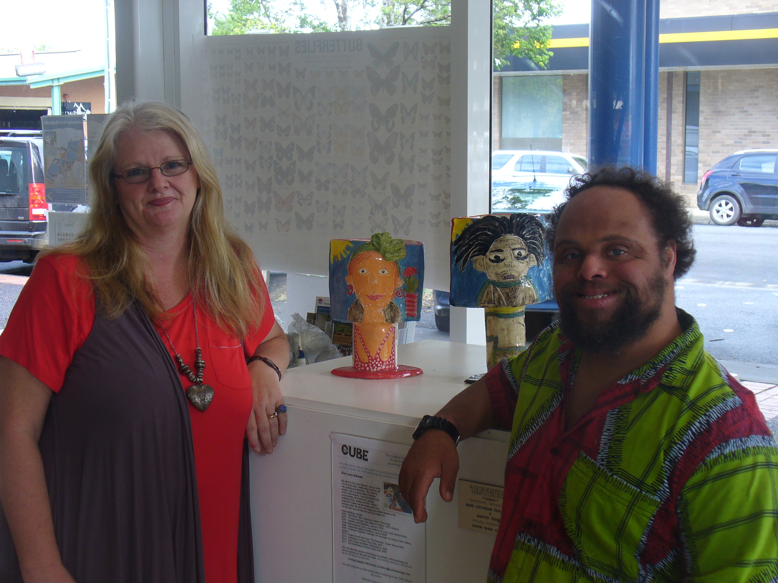 Zion Levy Stewart is the latest artist to exhibit in the art CUBE in the foyer of the Council Chambers in Mullumbimby. “Let me paint your portrait” showcases the passion that Zion brings to his creative portraits. Affectionately known as the CUBE, curator Debby Gower says “The CUBE is the smallest Gallery in the Byron Shire and its all about promoting local 3D Art. It’s a pleasure to have locals and tourists engaging with the energetic and vibrant work that Zion creates.” Zion has exhibited in a number of local and interstate venues including solo exhibitions at Lulu’s Cafe, Mullumbimby: Serpentine Gallery Exhibition, Lismore: Australian Ceramics Triennial “Off the Edge” at Chrissy Cotter Gallery, Sydney: Ocean Shores Arts Expo “The Elements”, Ocean Shores NSW 2010: IncREDible Art Show, Byron Bay.