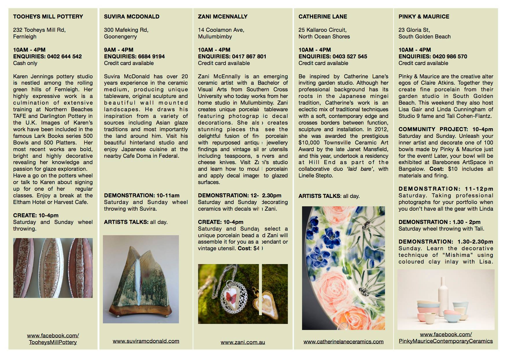For your nearest Open Studio location please check out: http://australianceramics.com/home/index.php?option=com_eventlist&view=categoryevents&id=1