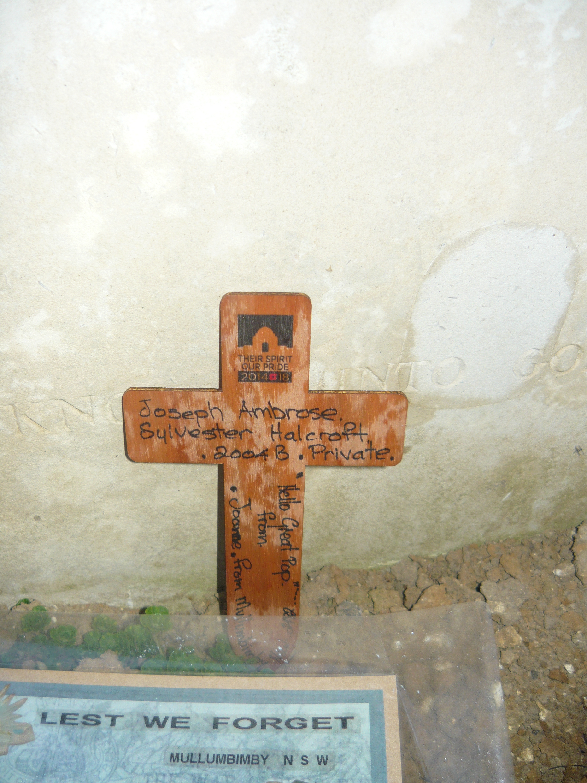While I was there I said a prayer for Joseph Ambrose Sylvester Halcroft – He was the grandfather of a friend of mine from Mullumbimby. Joseph died in the first world war and is buried at Villes Bretonneau and his granddaughter Jo wrote a very special message on one of the Australian War Memorial Crosses.
