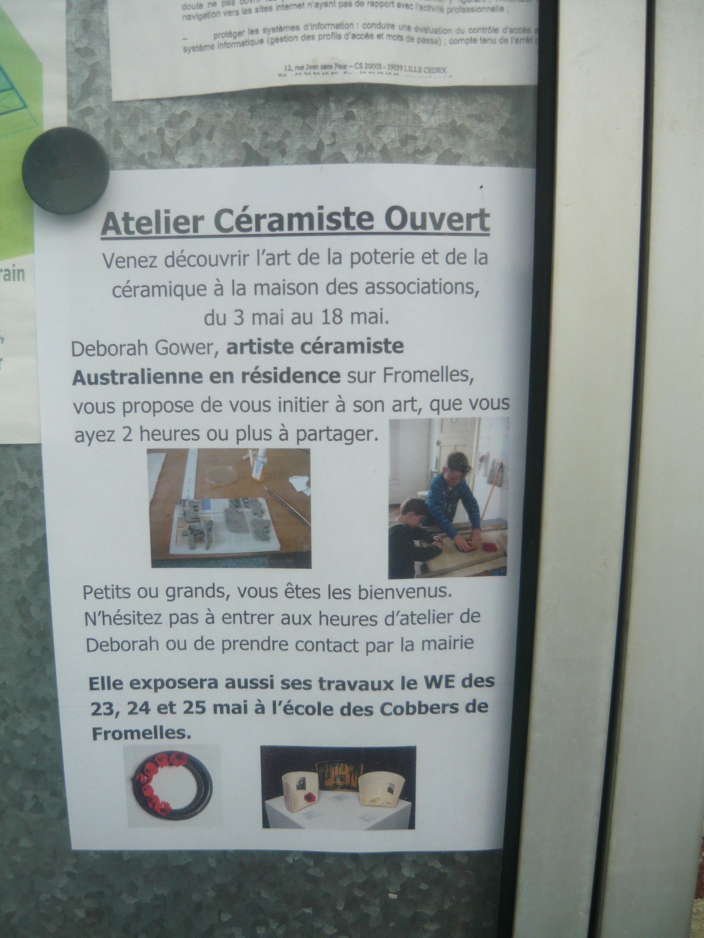 Please drop in and say hello. Even if I can’t speak French I would love to meet you and encourage you to play with some clay with me.