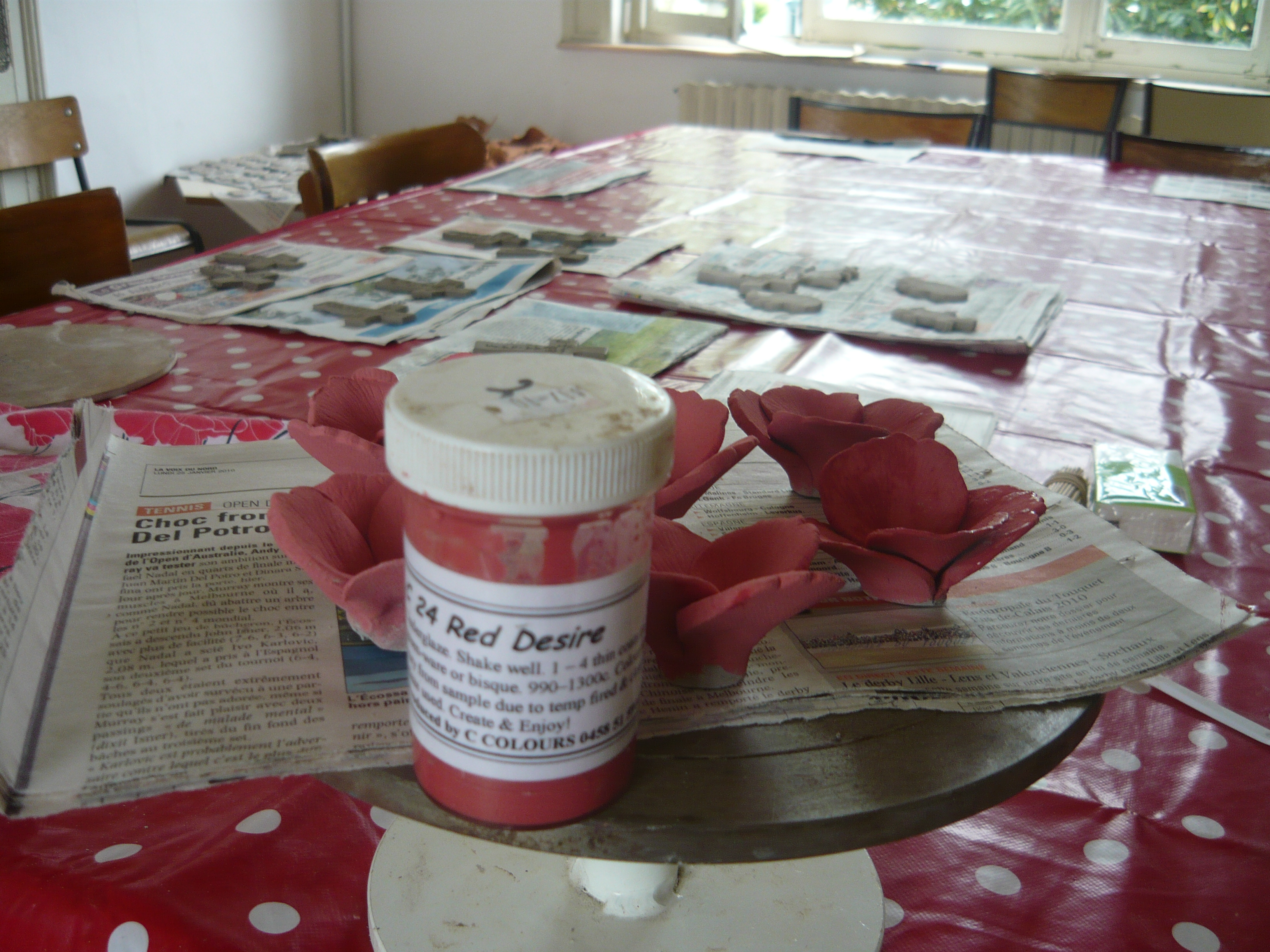 Today I added some underglaze colour to poppies. It is always an unknown when working with different clay but we shall see.