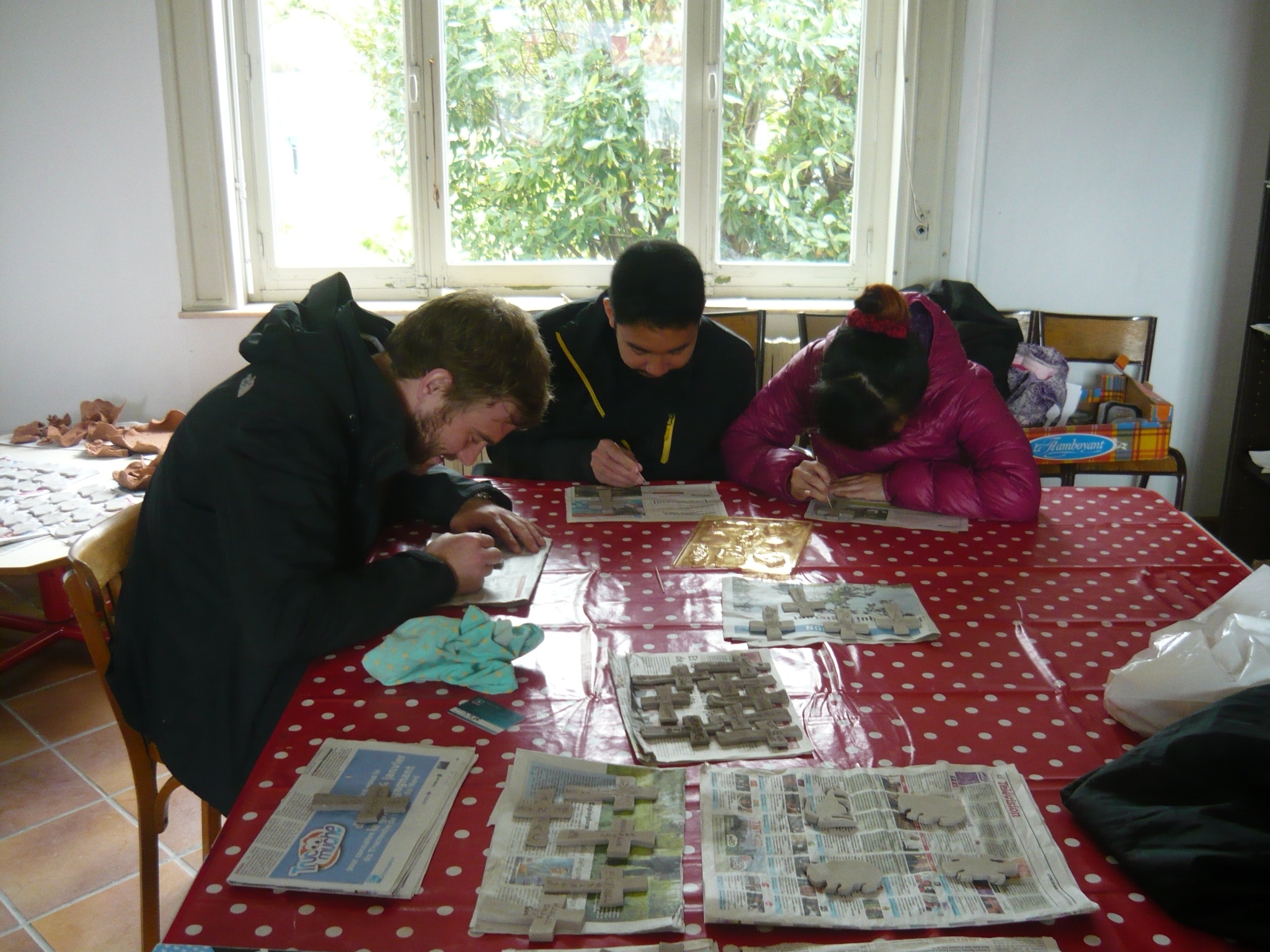 Yesterday saw new friends coming into the studio to decorate crosses. A special thank you to Gervias for his help and encouragement.