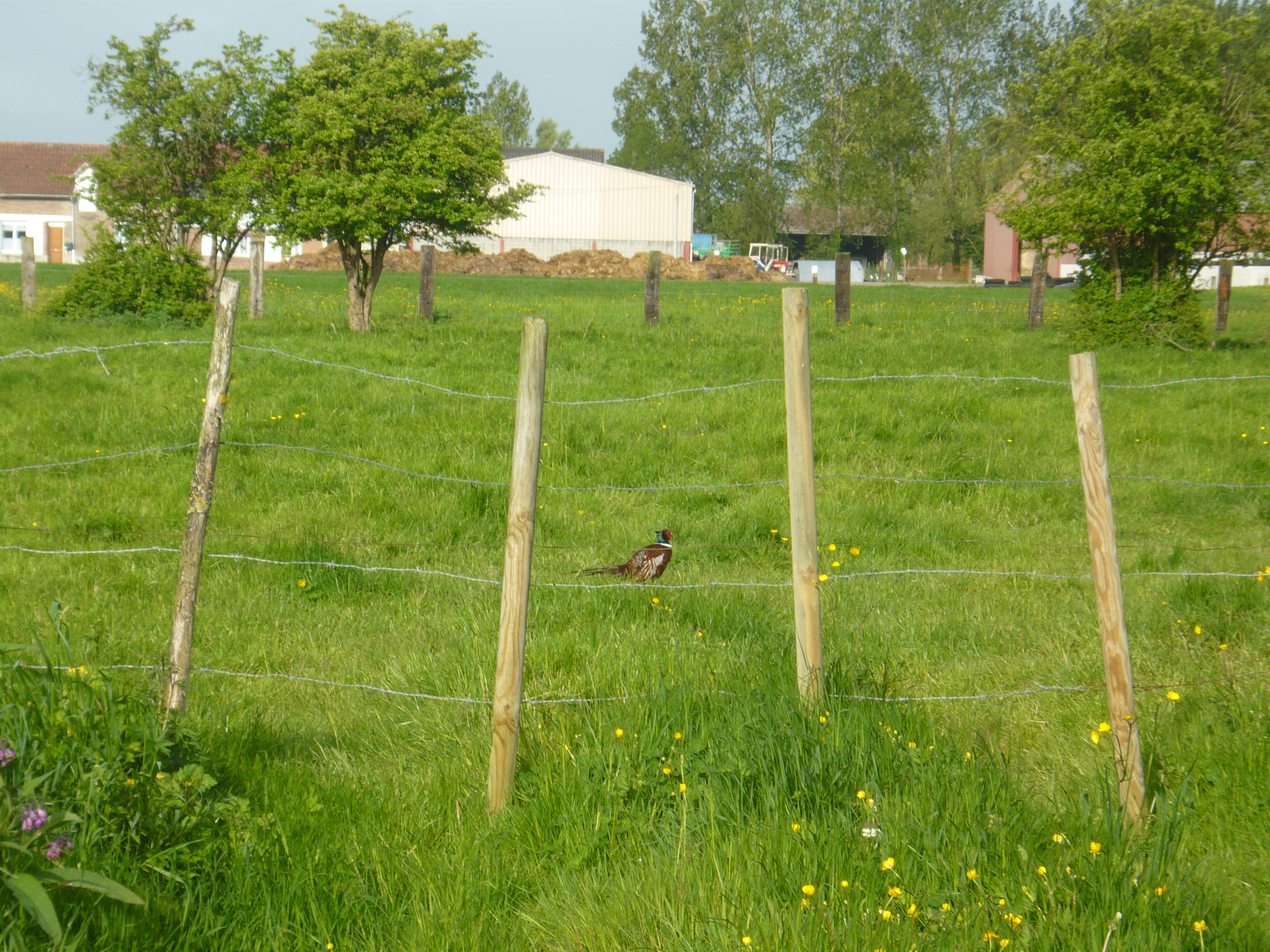 can you see him between the middle posts – yes a real life pheasant from Pheasant Wood who came out to say hello.