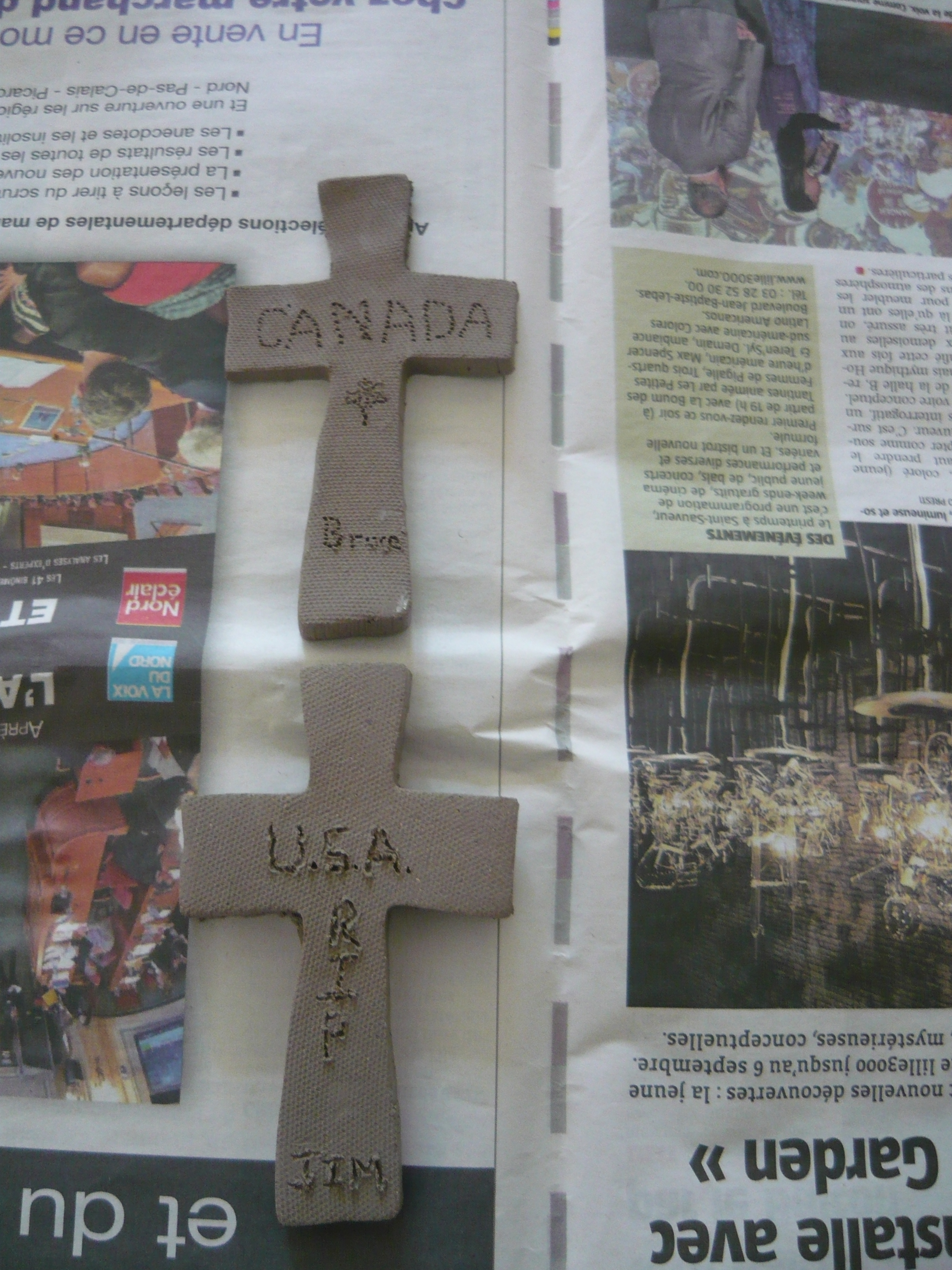 Today Bruce and James from Canada and the USA came in to visit and make a cross for our project. It was interesting to her about their travels in France. Safe onward journey guys