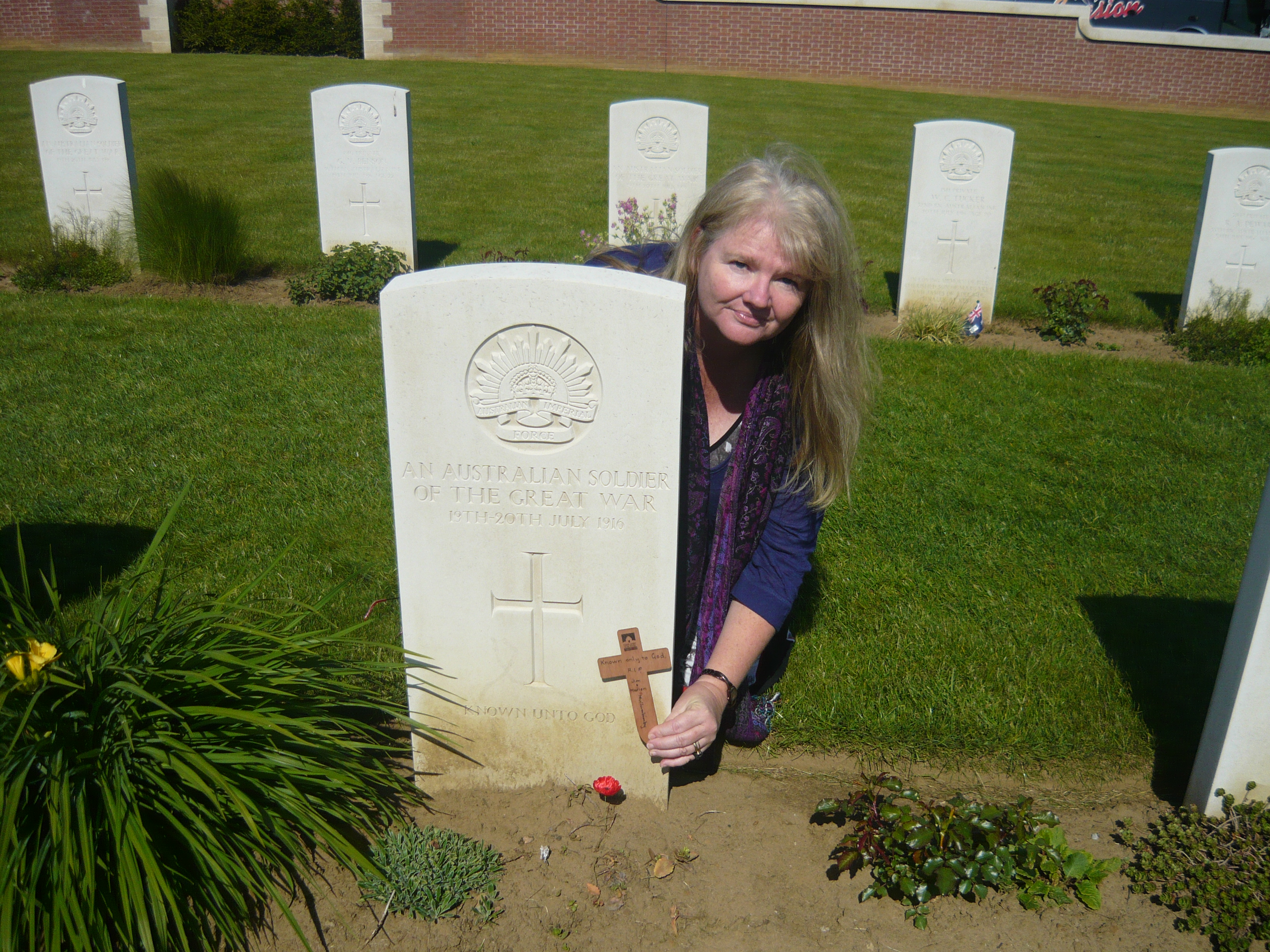 It is for the family of Albert Paton who died in the Battle of Fromelle 20 July 1916. For Marion who wrote such beautiful words on the cross – I am sure the words will echo in heaven that we are remembering Albert today.
