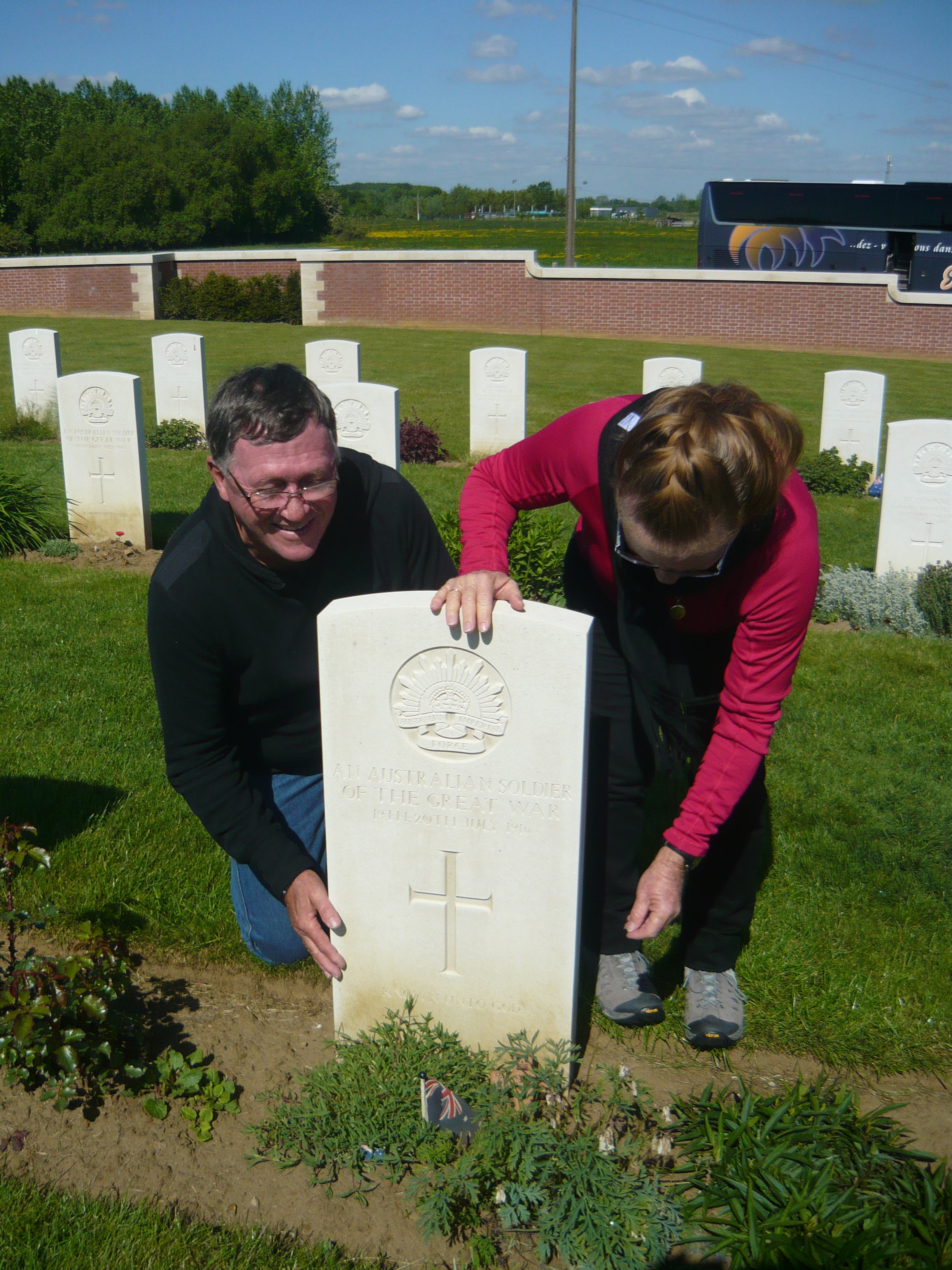 Today I had some special visitors from Australia. Heather (who I grew up with in Queensland) and her husband Greg. It was wonderful to see them. We made some special ceramic crosses and wrote on some wooden crosses which we placed on the graves of some Australian Soldiers. We remembered Vicki Lyn who is now in the arms of the angels.