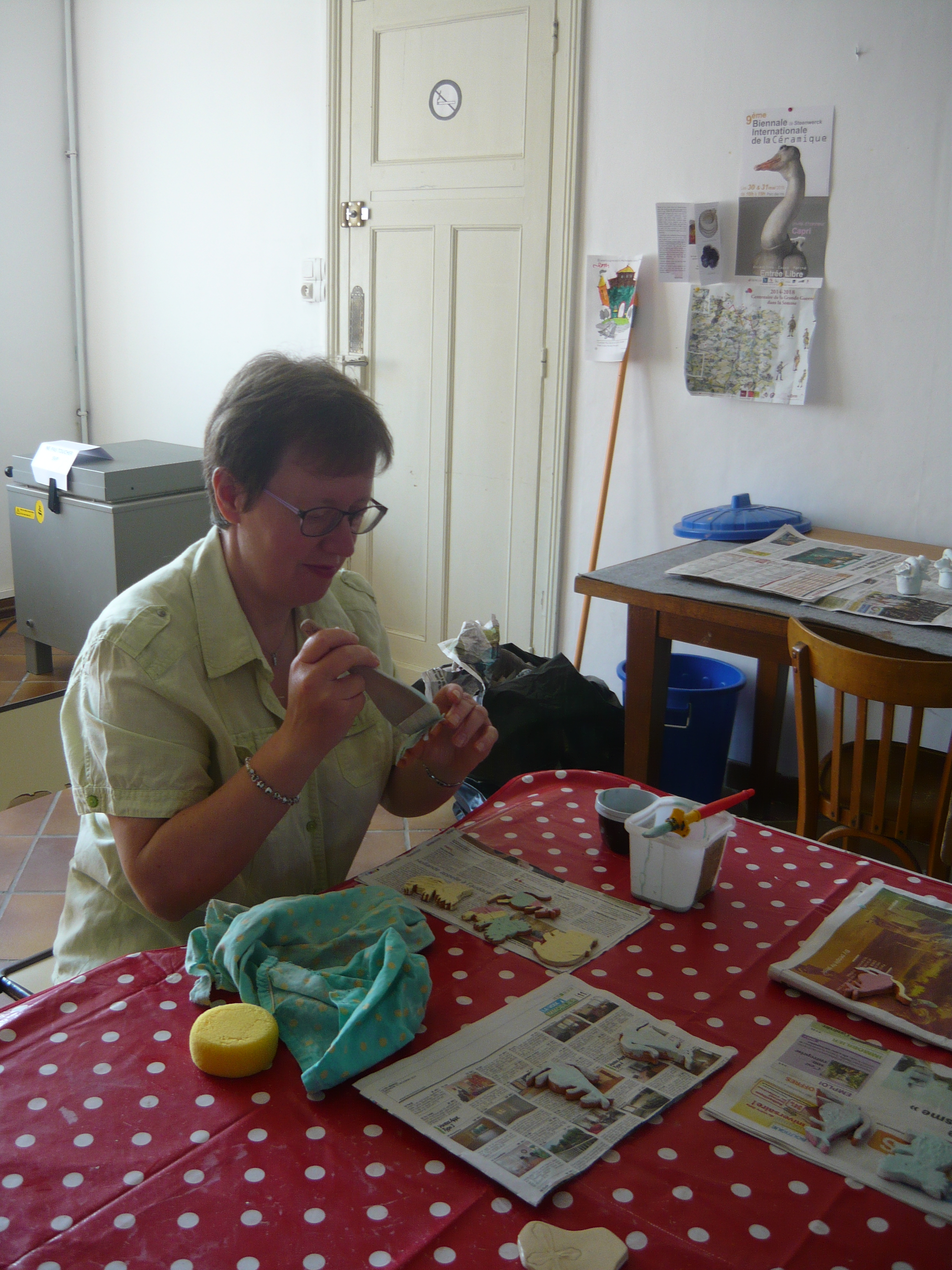 The lovely Thérèse my new host helped me glaze some koalas and kangaroos and made a beautiful cross for our garden.
