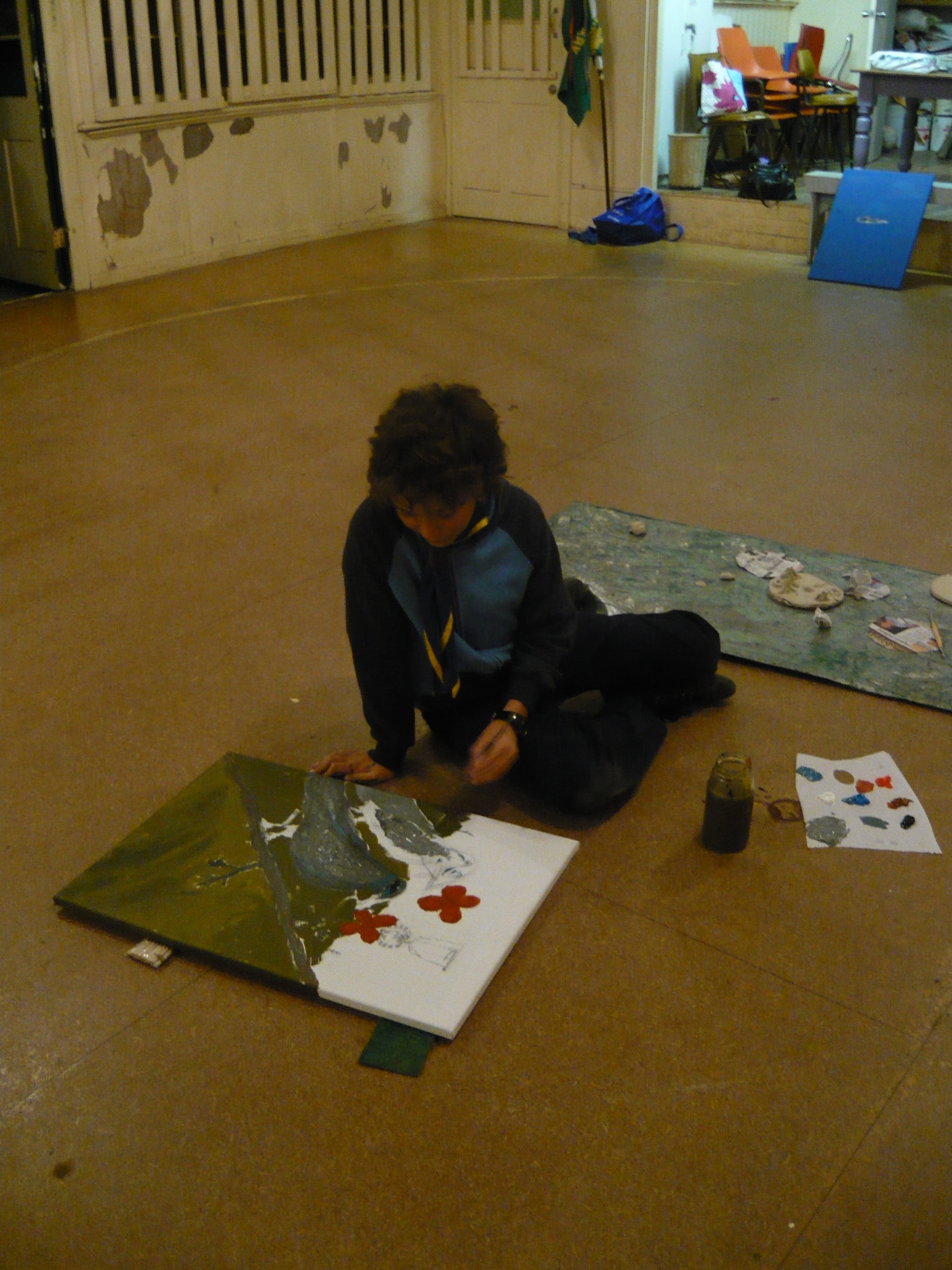 30 July 2014 – Scouting Out Our ANZACS – A joint collaboration between the Mullum Scouts and PAN artists Angele van den Heuvel, Ros Collins and Debby Gower is gaining momentum. Wednesday we spent a great night starting our canvasses and beginning some sculptures.